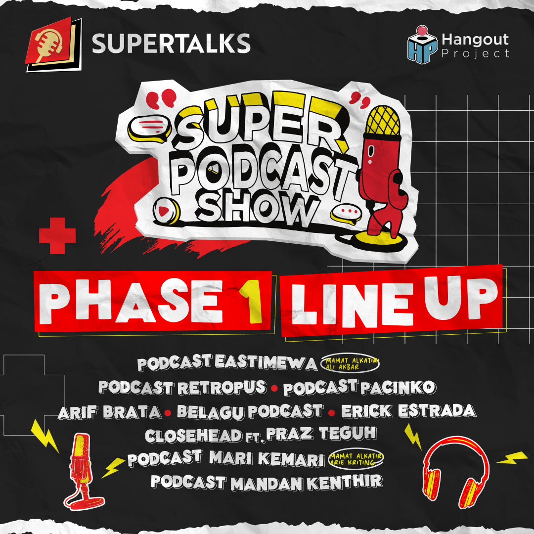 Super Podcast Show hadir kembali di 11 kota. Super Podcast Show tahun 2024 ini kita akan hadir di 11 kota. Kotanya mana aja sih? Depok, bekasi, Tasikmalaya, Bandung, Solo, Yogyakarta, Semarang, Surabaya, Malang, Jakarta, dan Bogor. Line up nya banyak banget dan pasti kamu suka. Ada Podcast Eastimewa, Podcast Retropus, Podcast Pacinko, Arif Brata, Belagu Podcast, Erick Estrada, Closehead ft. Praz Teguh, Podcast Mari Kemari, Podcast Mandan Kenthir dan banyak lagi. Jangan sampai kehabisan tiketnya. Segera beli!